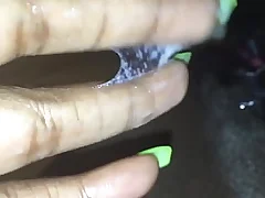 Fingering my tight black creamy pink pussy